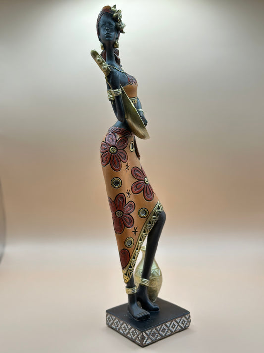 African Musician Figurine – 22 cm Handmade Resin Sculpture in Orange & Gold, Cultural Home Décor Art | Nestora Arts