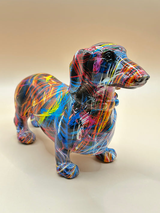 Modern Rainbow Resin Dachshund Figurine – 20 cm Colorful Dog Sculpture for Home Décor & Unique Gifts | Nestora Arts