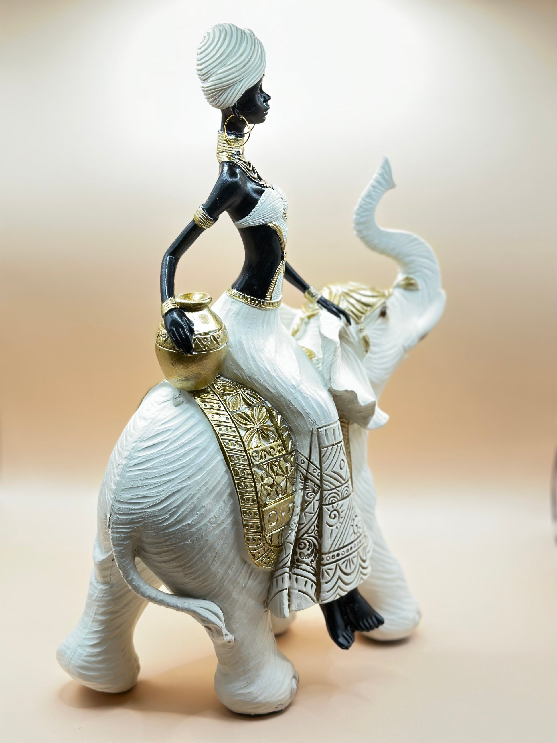 Elegant African Woman Riding Elephant Statue – 32 cm Resin Figurine for Luxury Home Décor & Unique Gifts | Nestora Arts