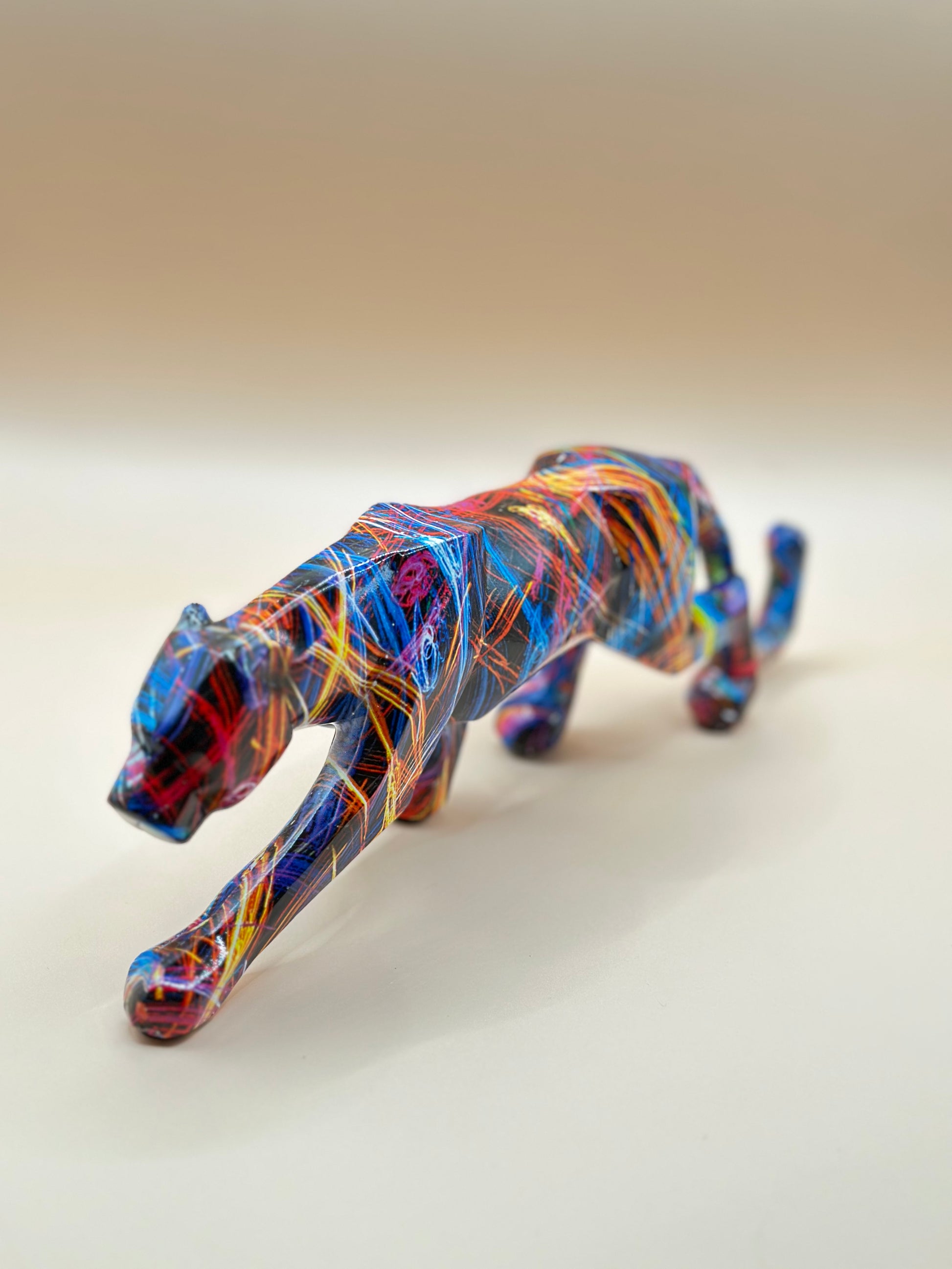 Geometric Leopard Statue – 24.5 cm Modern Resin Animal Ornament for Home & Office Décor | Nestora Arts